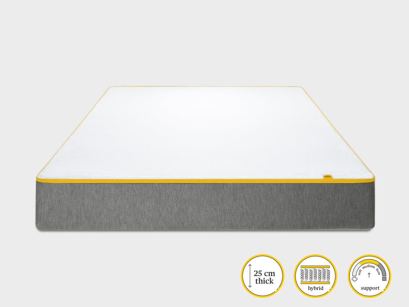 As with all of our eve mattresses, the original hybrid mattress has a medium-firm feel. We use full-size 12 cm springs to provide superior support for all sleepers.